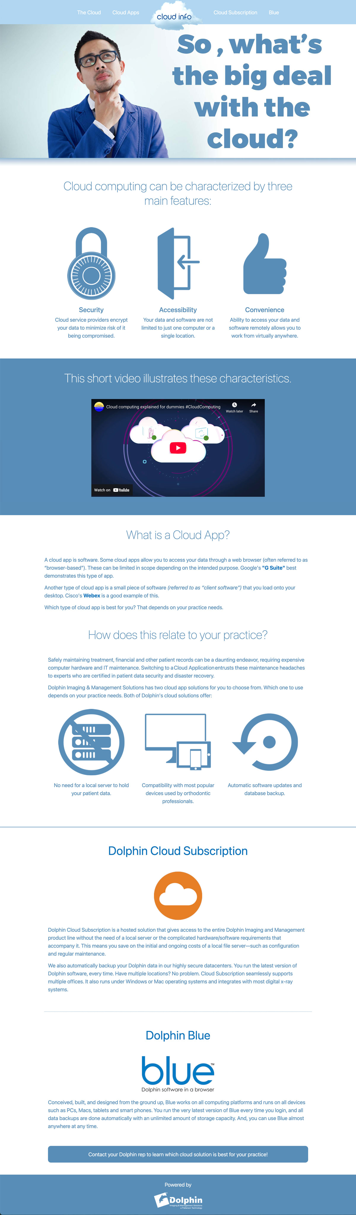 At Dolphin, almost every campaign or product push relied on a microsite. They gave each initiative a face, whether it was new software features, customer updates, or marketing efforts. Because these sites were time-limited, most are no longer active. The two included here are projects I built remotely, which is why I still have the markup available.